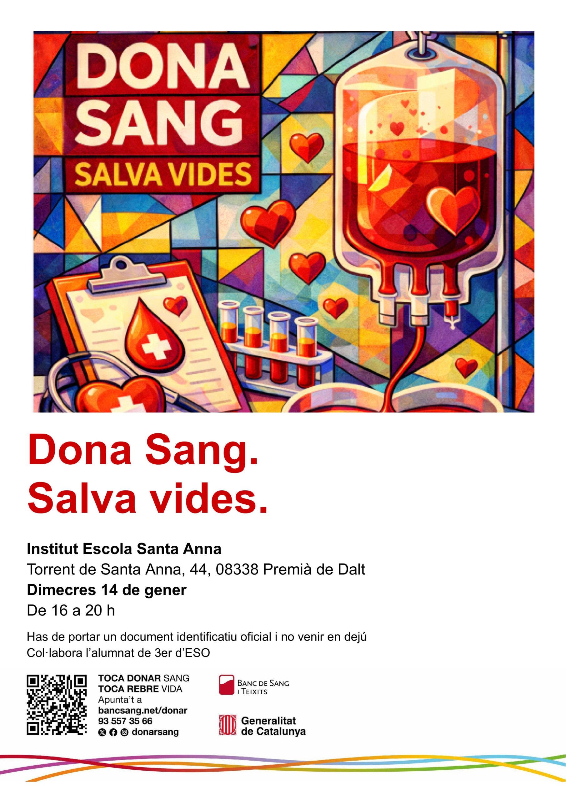 Data gen. 14 2026 Caducat! Hora 16:00 – 20:00 Dona sang. Salva vides. Comparteix aquest esdeveniment + Afegir a Google Calendar Exportació a + iCal / Outlook
