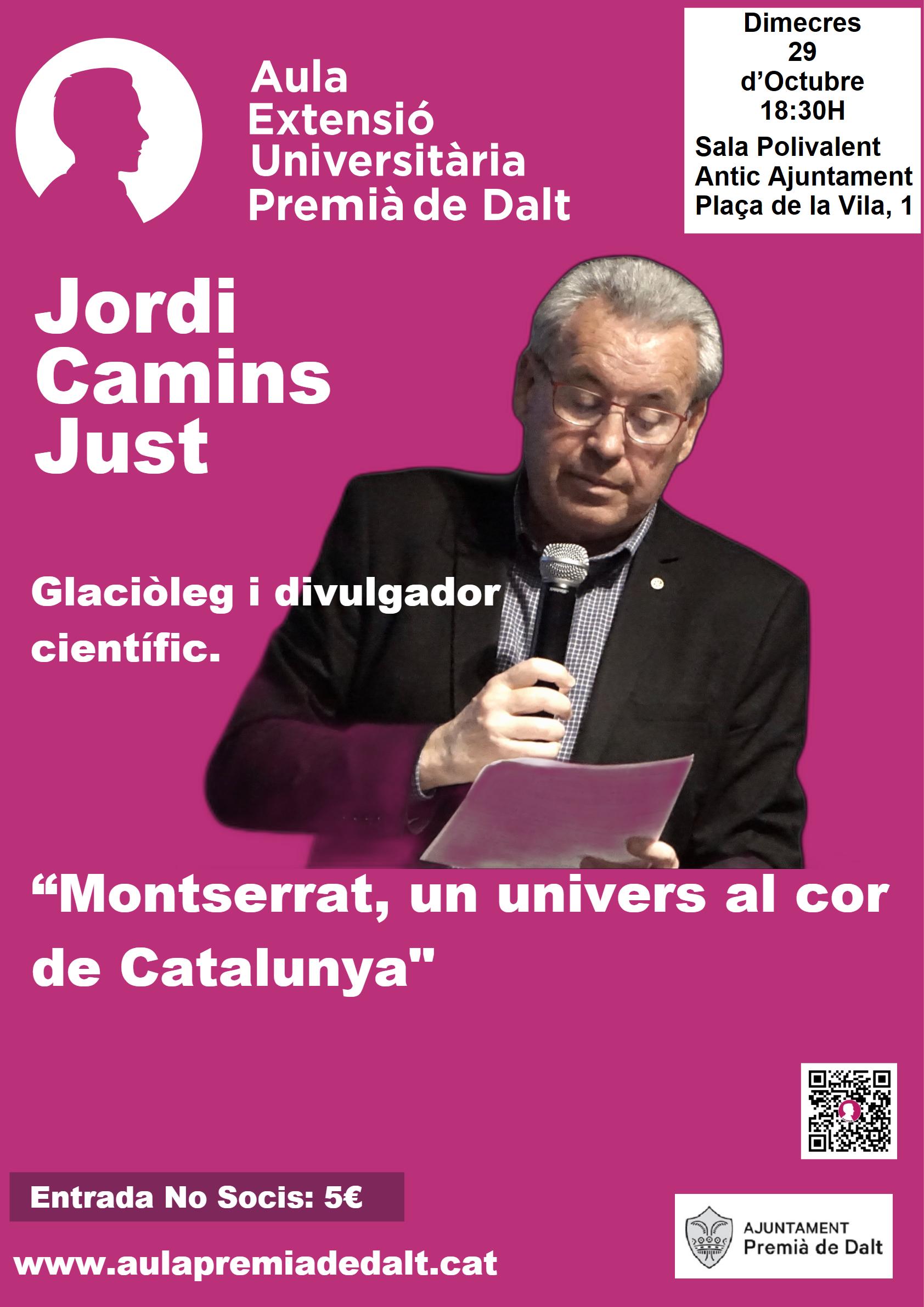 Jordi Camins Just, reconegut divulgador científic i expert en glaciologia, presenta la conferència “Montserrat, un univers al cor de Catalunya”.